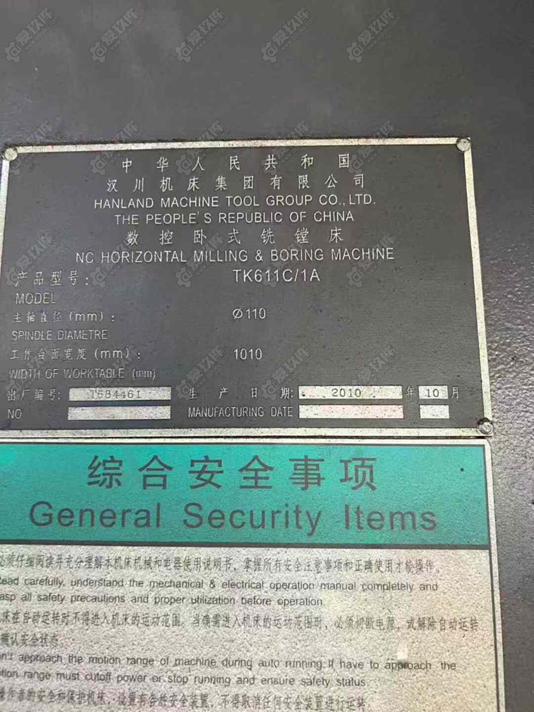 汉川10年TK611C-1A数控镗床,发那科系统,工作台千度一分,支持四轴联动,准新机二手价格,杭州工厂