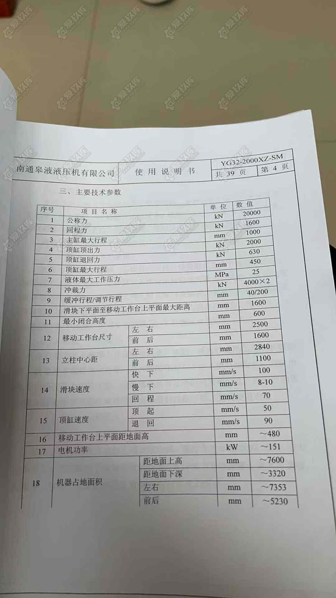 南通皋液10年2000吨液压机,工作台面1600*2500移动台,带顶出缸,设备安装少用
