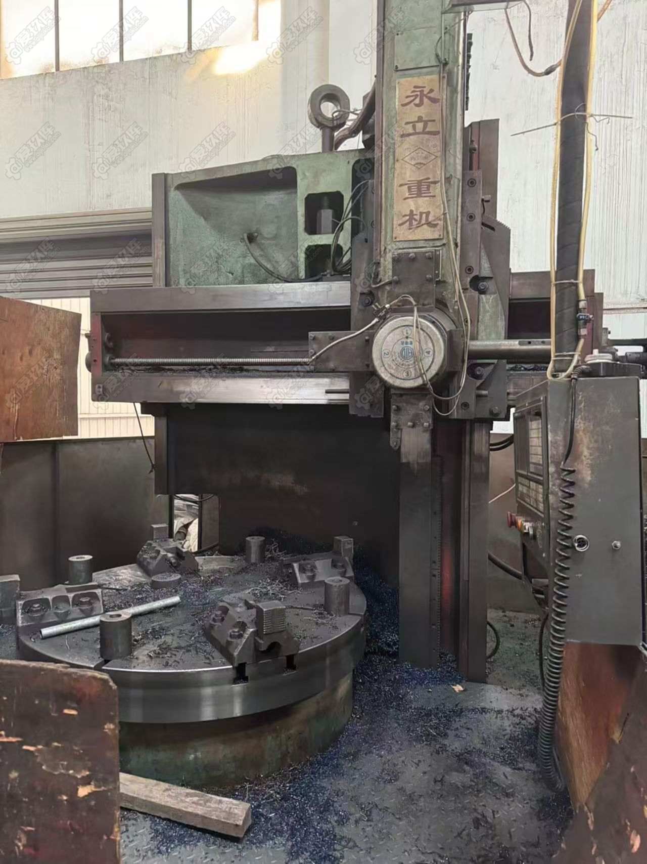 青岛永立2米数控立车(加工高度1.2米,广数980TDC系统,回转直径2米,卡盘:1.45米,带4工位电动刀架),需要的联系