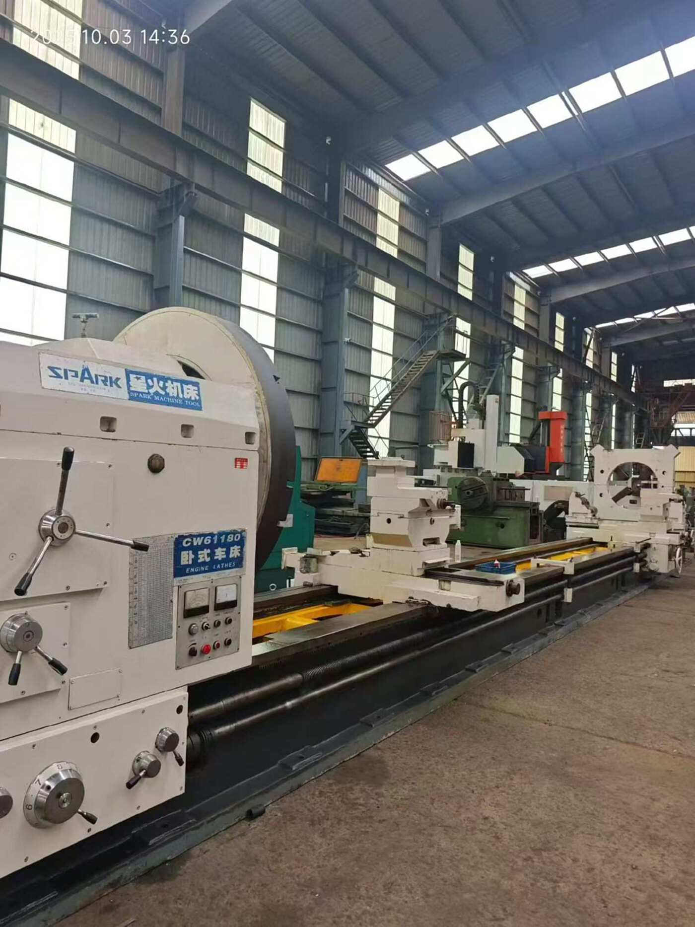 星火61180/12米重型卧车,双刀架,双平轨导轨宽度1.1米,附件重型中心架和托架各一个,直连电机,电动尾座